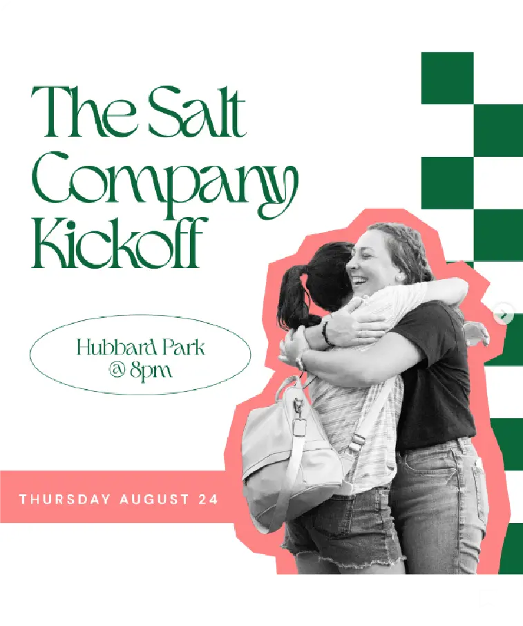 The original logo was painted on a bed sheet by a student leader in 1987 for the first Salt Company outdoor kickoff. Since then, we have used a digital version of the original painted logo until "THE" and "COMPANY" were updated with Mark Pro in 2020.